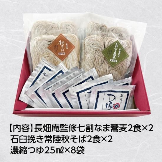 1260g(長畑庵監修七割なま蕎麦 めん220g×2/石臼挽き常陸秋そば 麺240g×2/創味のつゆ25ml×4/めんつゆ60g×4)