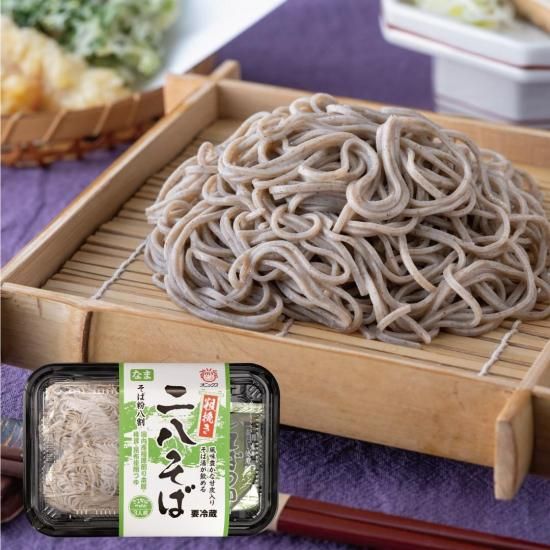 粗挽きそば粉を八割使用した、風味豊かな甘皮が入ったおそばです。