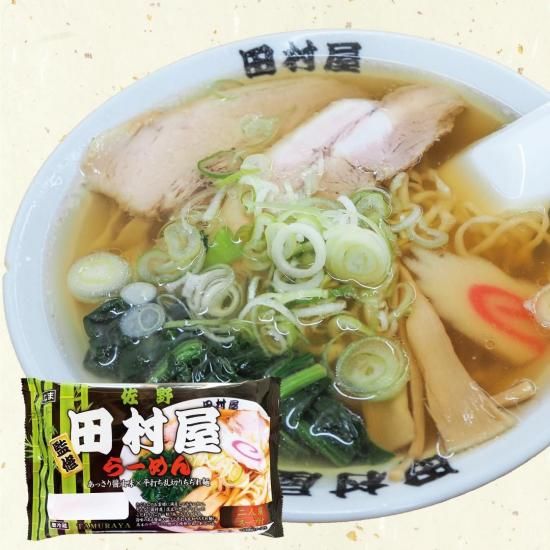 栃木県佐野市の銘店「田村屋」の店主監修のもと、佐野青竹打ち風の平打ち乱切りちぢれ麺に仕上げた独特の食感の太麺に、さっぱりとしてコクのある澄んだ色合いが特徴のあっさり醤油スープを合わせた自慢の一品です。