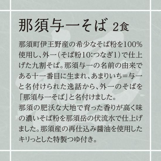 那須与一そば/【めん】そば粉(国内製造)、小麦粉、小麦たん白、/加工デンプン、酢酸(Na)、(一部に小麦、そばを含む)