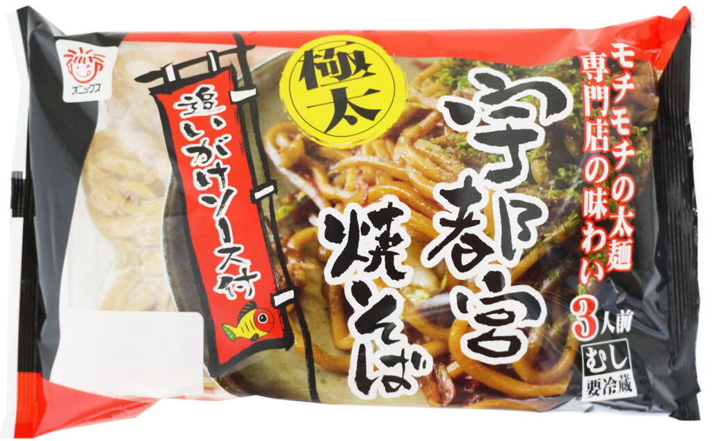 オニックスジャパンの宇都宮焼そばは、懐かしい味わいと、しっかりとした歯応えのもちもちの極太麺が特徴です。